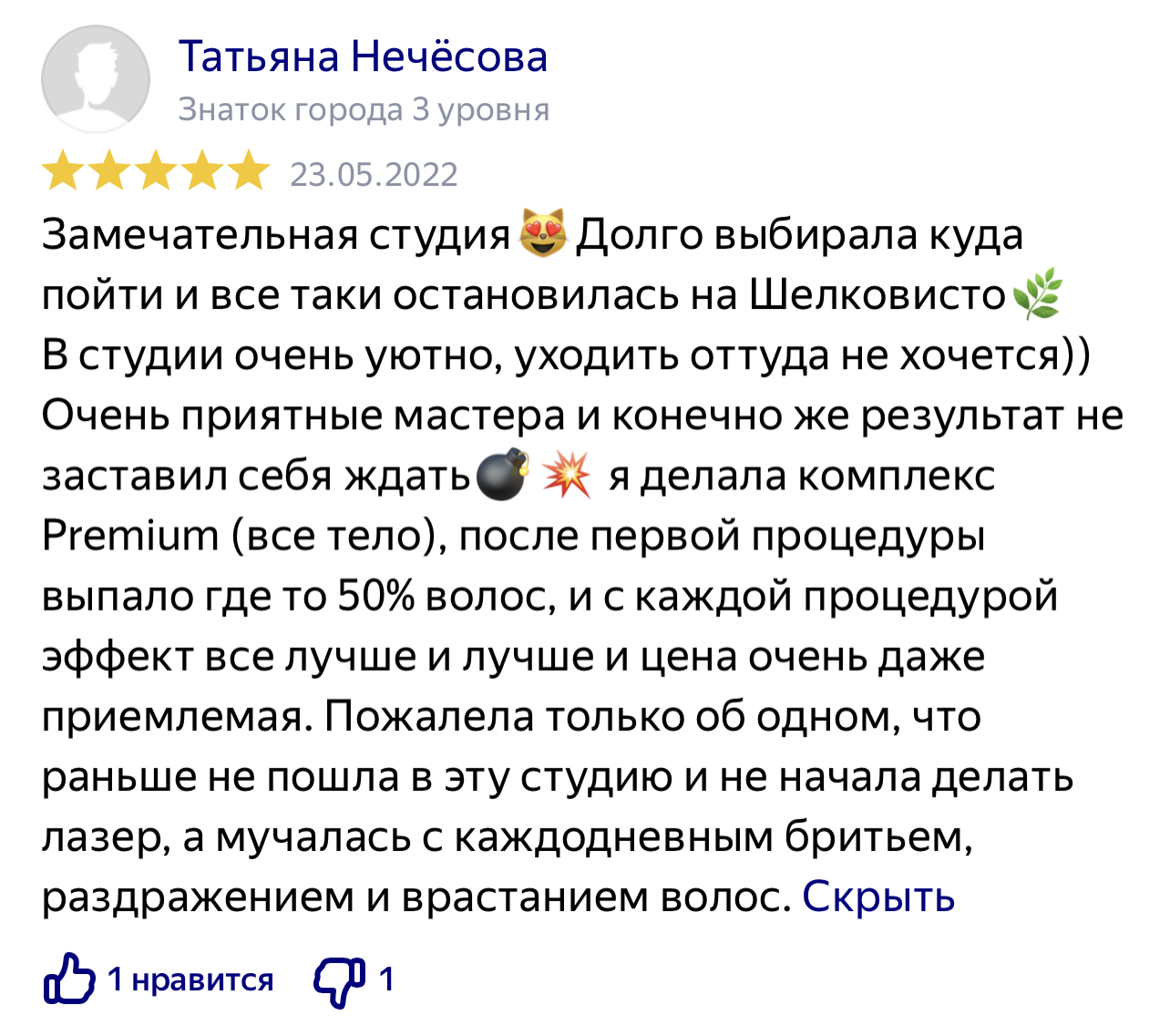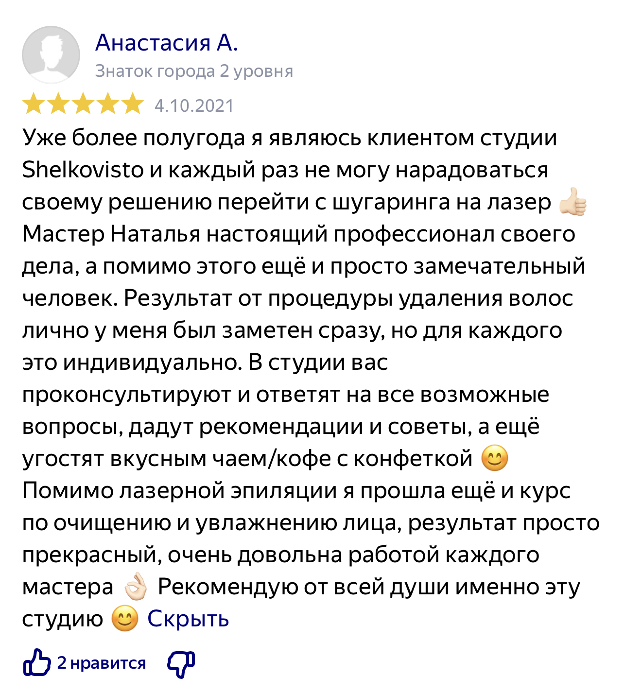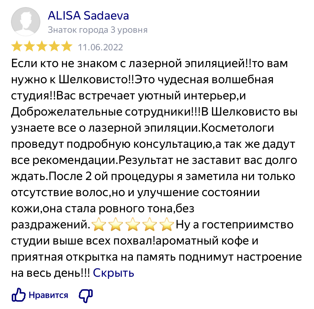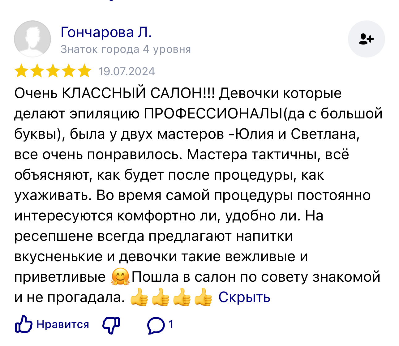 Мы с особым трепетом относимся к созданию атмосферы в наших клиниках. Перед процедурой вы можете расслабиться в комфортной зоне ожидания. В кабинетах вас ждет свежий халатик, тапочки, гигиенические принадлежности и подборка интересных фильмов для просмотра. Если вы спешите, то мы обязательно предложим кофе или чай с собой в наших фирменных стаканчиках.